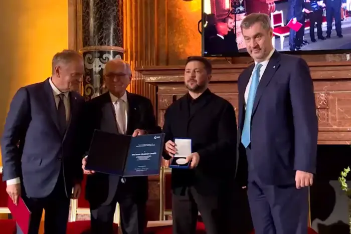 На полях Мюнхенської конференції з безпеки відбулася урочиста церемонія вручення престижної премії імені Евальда фон Кляйста. У 2026 році організатори MSC вирішили відзначити не окремого політика, а весь український народ за його надзвичайну мужність, самопожертву та стійкість у захисті свободи Європи. Нагороду від імені українців прийняв Президент Володимир Зеленський у суботу ввечері, 14 лютого 2026 року, в Імператорській залі мюнхенської Резиденції. Про це повідомляє «Главком» з посиланням на Володимира Зеленського.